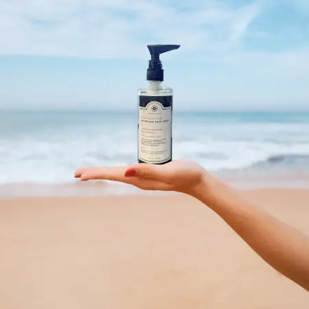 A calming, ultra-hydrating face lotion designed to cool, restore, and rebalance skin after sun and environmental exposure—delivering lightweight nourishment, barrier support, and visible radiance.