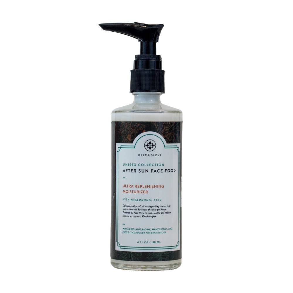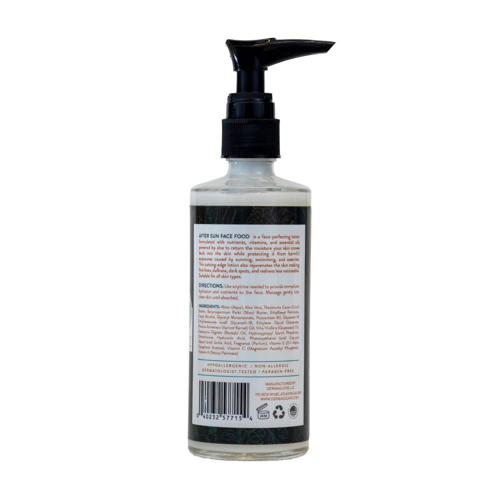 AFTER SUN FACE FOOD is a soothing facial lotion formulated to replenish, calm, and protect skin stressed by sun, heat, swimming, exercise, and outdoor exposure. Designed as “Face Food,” this formula delivers essential hydration and nutrients the skin craves—without heaviness or irritation. Powered by Aloe Vera, this lightweight lotion continuously cools and hydrates while helping restore the skin’s natural pH balance. Upon application, it forms a silky, breathable barrier that helps reduce moisture loss and support skin recovery after overexposure. Concentrated emollients, botanical oils, and essential nutrients work together to improve skin texture, soften the appearance of fine lines, and reduce dullness, redness, and uneven tone. AFTER SUN FACE FOOD absorbs quickly, leaving skin smooth, refreshed, and visibly radiant—making it ideal for daily use or as a targeted recovery step after sun, travel, or active outdoor days. Gentle enough for all skin types, this non-toxic, skin-supportive formula helps your complexion recover comfortably and glow naturally.