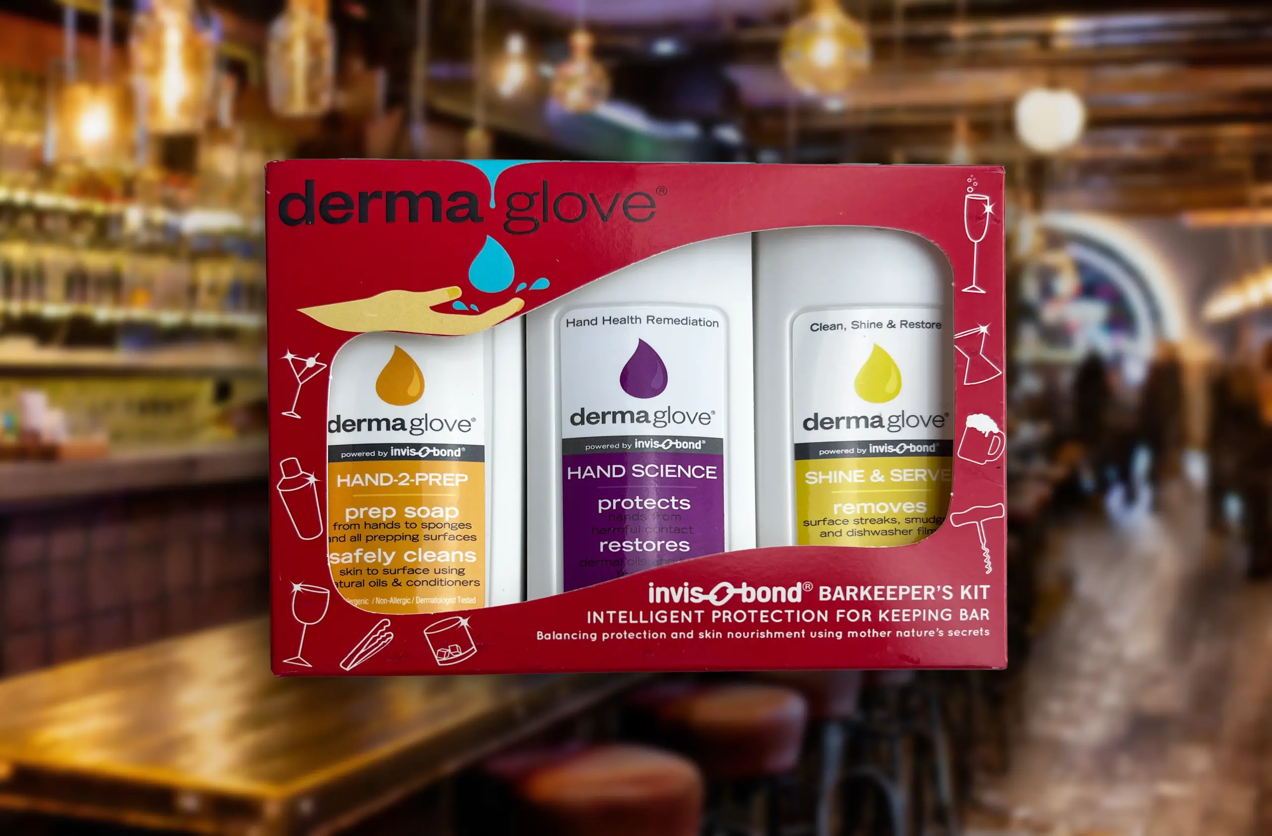The DERMAGLOVE Barkeepers Kit is designed for hospitality professionals who rely on their hands all day. Whether behind the bar, in the kitchen, or on the floor, this 3-piece kit supports clean, comfortable skin without drying or chemical irritation. Powered by INVIS-O-BOND Technology, each formula helps create a breathable protective layer that supports skin wellness while keeping hands refreshed between washes. Compact and easy to carry, the Barkeepers Kit is a thoughtful gift and an essential tool for anyone working in fast-paced service environments.