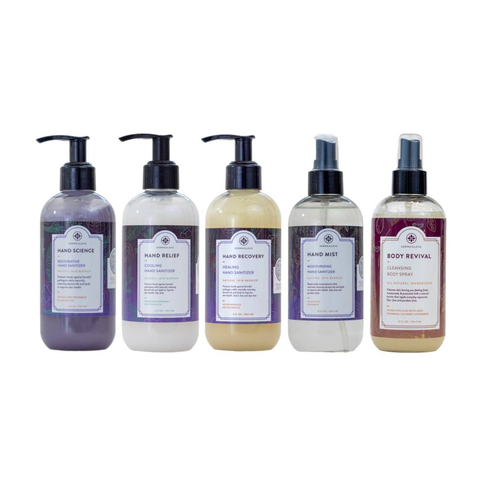 The HAND + BODY PROTECTION KIT brings together five of DERMAGLOVE’s most trusted sanitizing and skin-supportive formulas in one comprehensive system. Designed to protect against pathogens while actively restoring the skin barrier, this kit delivers hydration, balance, and defense wherever life takes you. Each FDA-registered formula is infused with vitamins, minerals, and INVIS-O-BOND Technology to lock in moisture, replenish oils and lipids, and support immune function at the skin level. Unlike traditional sanitizers, these solutions are designed to heal while they protect.