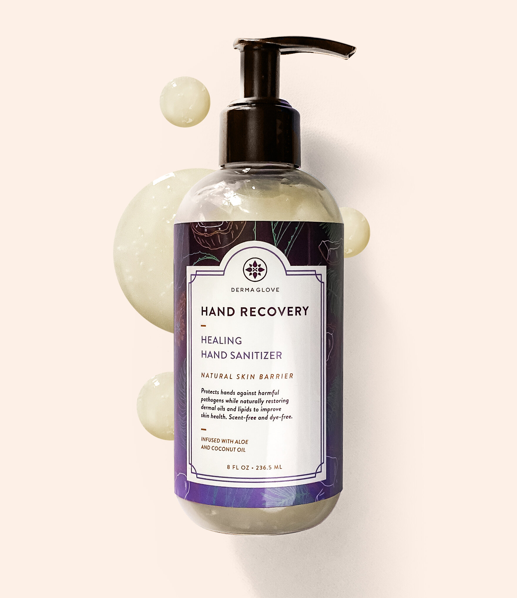 HAND RECOVERY is a no-scent, no-dye hand gel sanitizer designed to restore moisture, rebalance pH, and repair skin damaged by over washing.