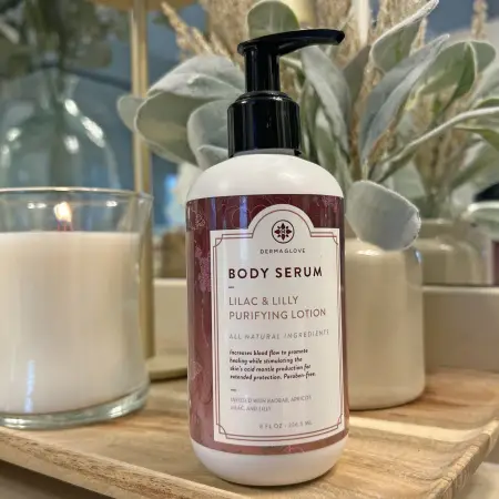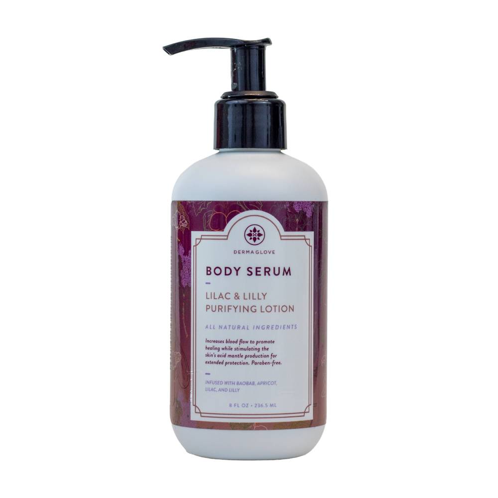 Lilac & Lily Body Serum was created in 2015 as part of DERMAGLOVE’s original body serum line, developed to address the body’s need for lightweight, consistent hydration. This serum delivers moisture without heaviness, helping skin maintain balance and softness. Ideal for daily use, it absorbs quickly and supports the skin’s natural barrier while enhancing overall comfort. The gentle formulation makes it suitable for layering with other body care products or wearing alone as a simple hydration step. This serum reflects DERMAGLOVE’s foundational belief that body care should be adaptable, intuitive, and supportive of long-term skin health.