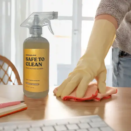 SAFE TO CLEAN is developed to simplify cleaning without sacrificing performance or safety. This versatile, ready-to-use botanical cleaner replaces an entire shelf of conventional products with one effective, skin-safe formula. Coconut-derived surfactants break down grease, soap scum, grime, and everyday buildup on tile, sealed stone, stainless steel, appliances, vinyl, composites, doors, and high-touch surfaces—without harsh fumes or residue. Powered by DERMAGLOVE’s proprietary INVIS-O-BOND Technology, SAFE TO CLEAN forms a micro-thin, breathable barrier that helps surfaces stay cleaner longer between wipe-downs, reducing re-soiling and the need for aggressive scrubbing. The result is faster daily maintenance, improved surface longevity, and a cleaner-feeling environment without chemical overload. Crafted in small batches and packaged in 16oz repurposed plastic sprayers, SAFE TO CLEAN supports sustainable living while delivering professional-grade results. Vegan, biodegradable, cruelty-free, and free from synthetic fragrance, it is ideal for households, classrooms, offices, and wellness-focused facilities seeking effective hygiene without compromise. SAFE TO CLEAN reflects DERMAGLOVE’s belief that powerful cleaning should protect people, surfaces, and the environment equally.