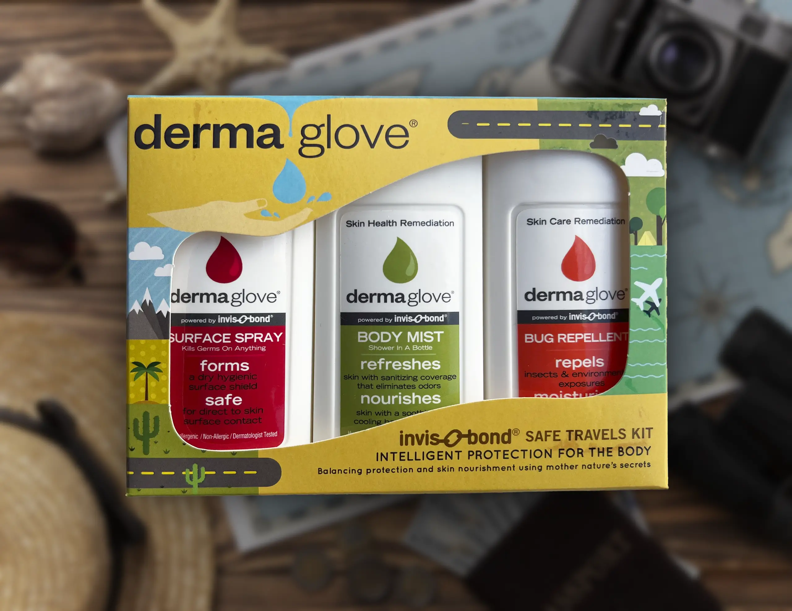 The DERMAGLOVE Safe Travels Kit is your 3-piece, TSA-friendly hygiene companion for airport days, hotel stays, road trips, and busy travel schedules. Travel can dry out skin and increase contact with unknown surfaces—this set helps you stay clean, balanced, and comfortable without chemical-heavy products. Powered by INVIS-O-BOND Technology, DERMAGLOVE formulas are designed to support a breathable protective barrier while keeping skin feeling hydrated and refreshed. Keep it in your carry-on, purse, glove box, or gym bag so every trip feels cleaner, calmer, and more confident.