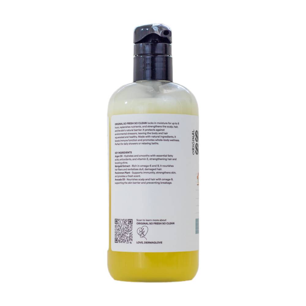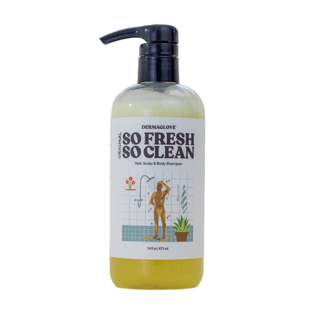 SO FRESH SO CLEAN is a multi-purpose cleansing solution created for those who value simplicity without sacrificing skin and hair health. This 3-in-1 formula gently cleanses the body, scalp, and hair while replenishing moisture and supporting the skin’s natural barrier. Formulated with organic, botanical, and plant-based ingredients, SO FRESH SO CLEAN helps lock in hydration for up to 8 hours while delivering essential nutrients that strengthen the skin and scalp. Its mild yet effective cleansing action removes buildup without stripping natural oils, making it suitable for daily use and sensitive skin types. Designed to support whole-body wellness, this cleanser protects against environmental stressors while leaving skin feeling refreshed, hair soft, and the scalp balanced. SO FRESH SO CLEAN reflects DERMAGLOVE’s holistic approach to hygiene—where cleansing is not just about removal, but restoration, balance, and long-term health.
