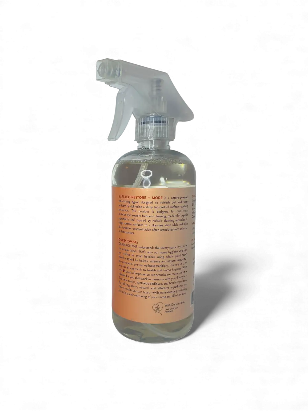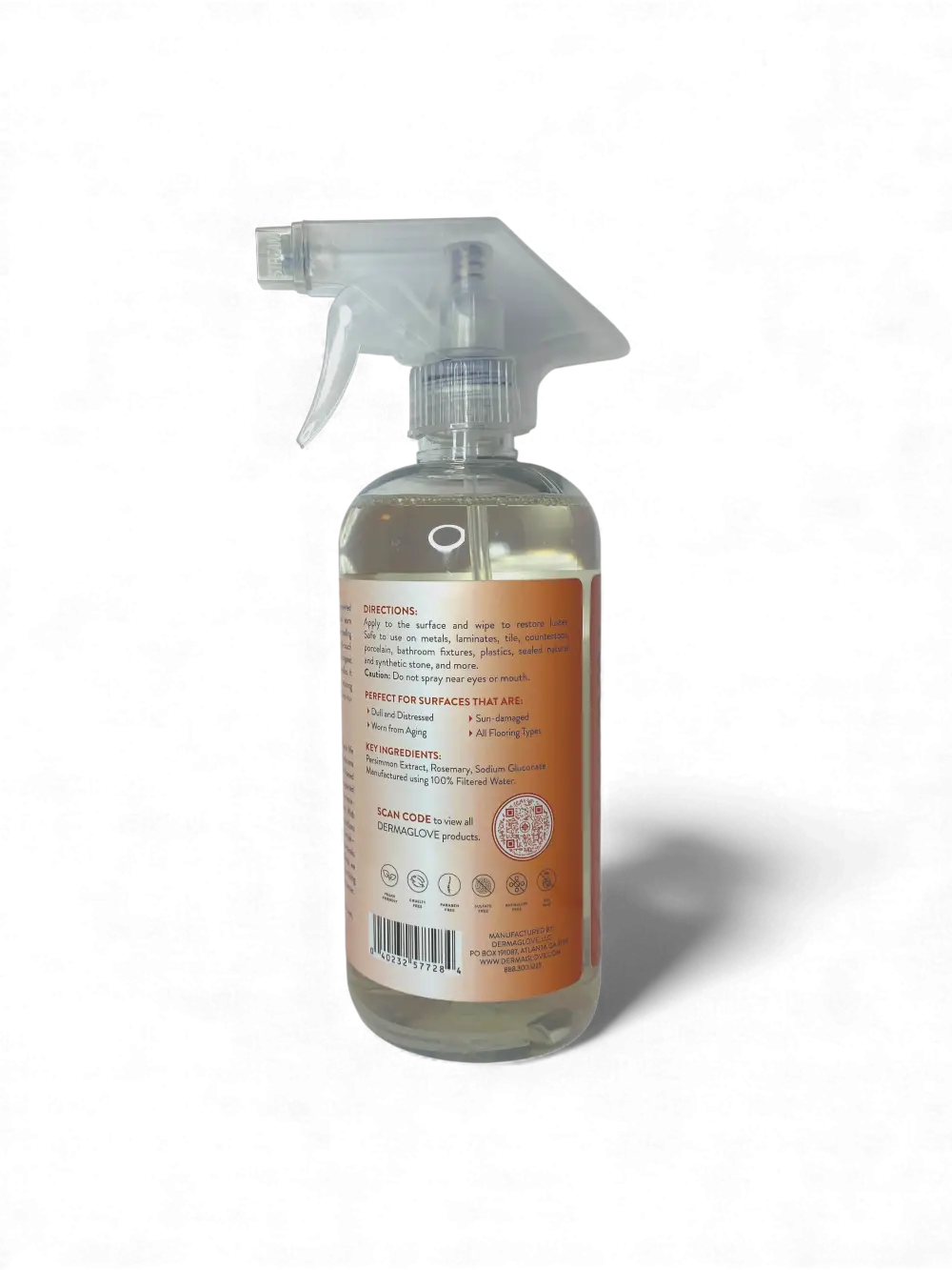 SURFACE RESTORE + MORE is developed for surfaces that are cleaned often but rarely cared for properly. In industrial environments, teams needed a single solution that could safely lift residue, restore appearance, and protect finishes—without wax buildup, greasy films, or long-term damage. That same science now supports everyday homes. This non-toxic, plant-based formula revitalizes stainless steel, aluminum, chrome, sealed stone, fixtures, hardware, and select wood surfaces by gently removing dulling residue and replenishing the surface with botanical esters and conditioning agents. DERMAGLOVE’s INVIS-O-BOND Technology forms a breathable micro-shield that helps finishes resist fingerprints, moisture, and environmental wear—keeping surfaces looking cleaner longer with less effort. Packaged in a 16oz repurposed plastic spray bottle and crafted in small batches for consistency, SURFACE RESTORE + MORE extends the life of surfaces while reducing the need for harsh polishes and disposable wipes. The result is a renewed, conditioned finish that looks cared for—not coated. Designed for homes that value longevity, wellness, and intelligent maintenance, this formula delivers professional-grade results without compromising health or indoor air quality.