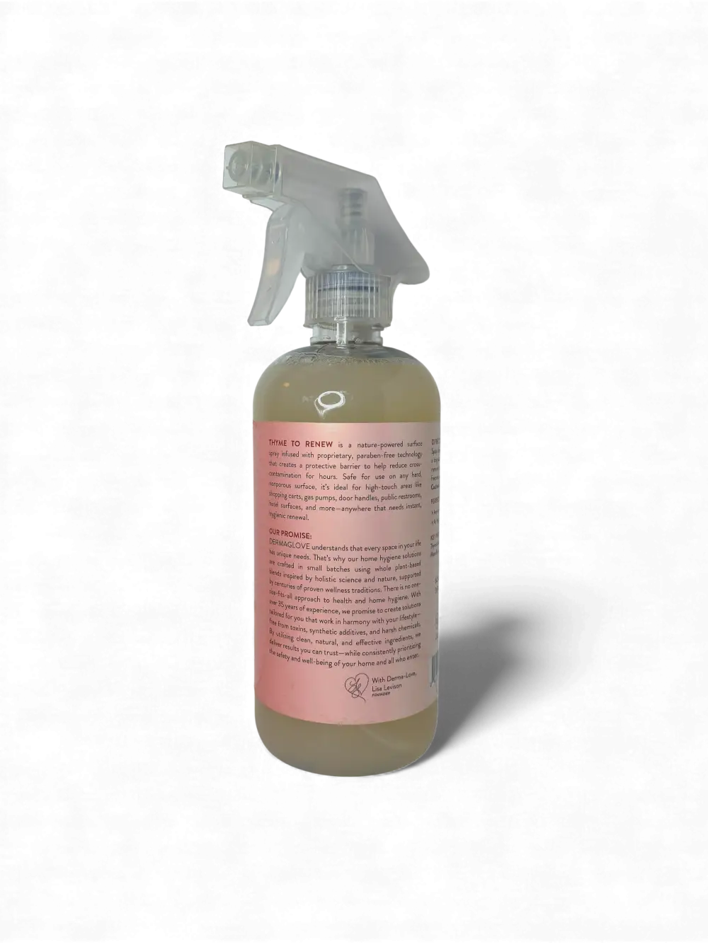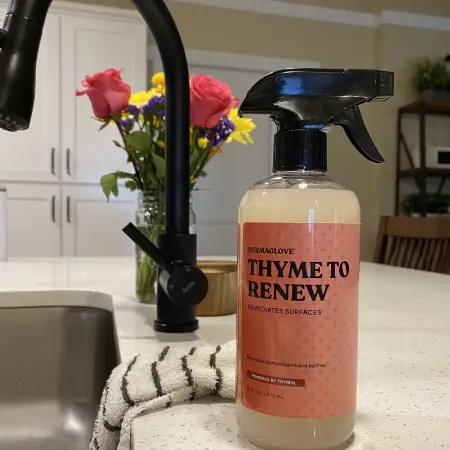 THYME TO RENEW is inspired by nature’s original defense systems. Thyme oil has long been recognized for its powerful cleansing and purifying properties, and in this formulation, it is paired with gentle, plant-based surfactants to refresh surfaces and spaces naturally. Instead of masking odors with heavy fragrance, THYME TO RENEW neutralizes the source, leaving rooms noticeably cleaner and lighter. DERMAGLOVE’s proprietary INVIS-O-BOND Technology adds a breathable, micro-thin layer that helps surfaces feel fresher longer between cleanings. The scent profile is herbal, clean, and fleeting—designed to signal cleanliness, not perfume the air. Safe for use throughout the home, this formula works beautifully in kitchens, bathrooms, bins, fabrics, pet areas, and other high-use spaces. Crafted in small batches and packaged in 16oz repurposed plastic sprayers designed for refilling, THYME TO RENEW reflects DERMAGLOVE’s commitment to reducing toxins while respecting the microbiome of indoor environments. Vegan, biodegradable, and cruelty-free, it delivers powerful performance without compromising air quality, surface integrity, or peace of mind. THYME TO RENEW captures the heart of Puravive: industrial-grade thinking refined into safe, affordable, everyday home hygiene.