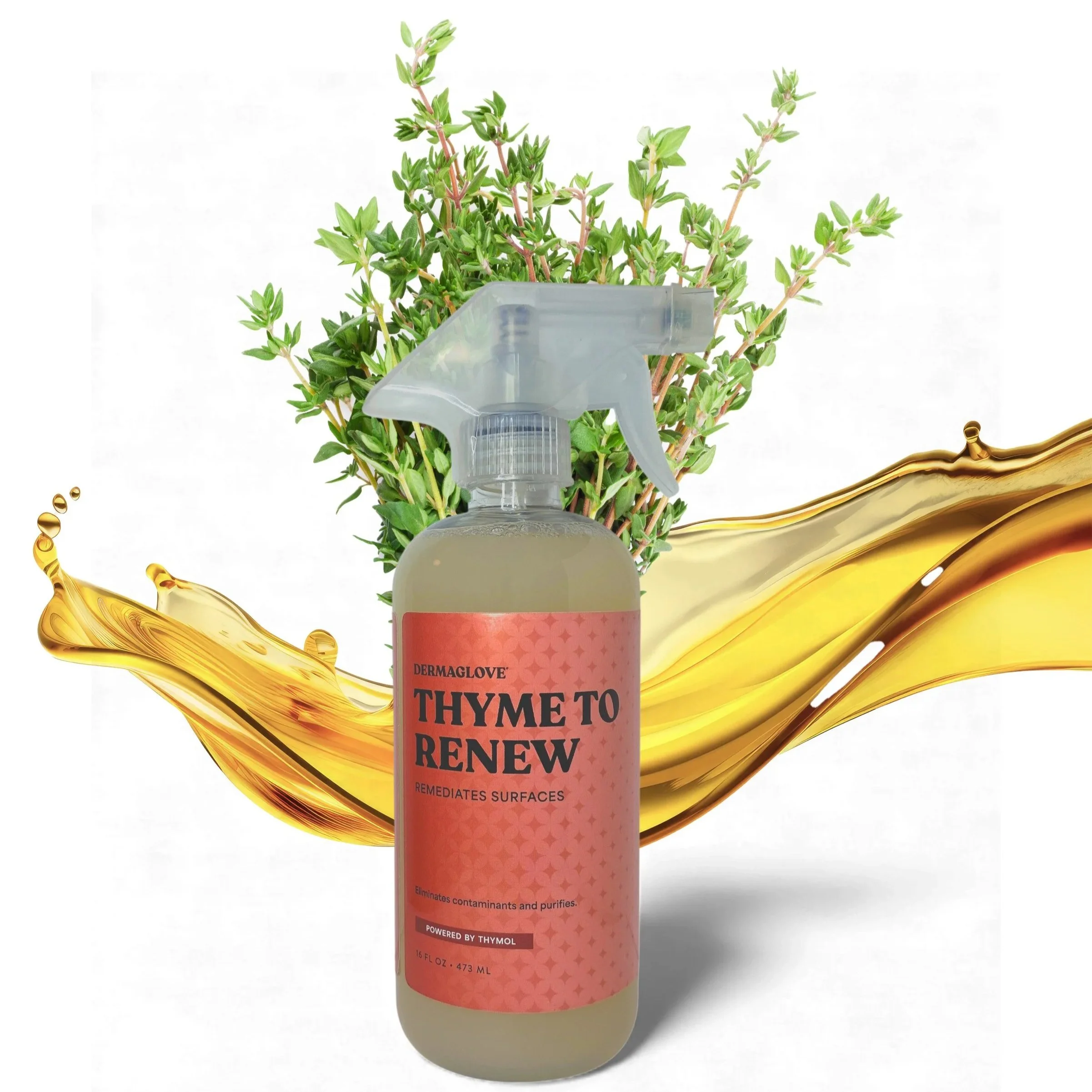 THYME TO RENEW is a botanical surface cleaner and odor neutralizer powered by thyme oil and plant-based surfactants. It refreshes kitchens, bathrooms, fabrics, and high-traffic areas by targeting odor at the source—without synthetic fragrance or harsh chemicals.